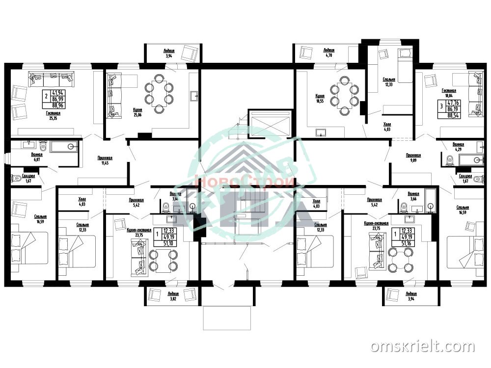 Беспроцентная рассрочка Дом сдан! 89/42/25 2-комнатная квартира, которую можно рассматривать как евротрешку … В первом подъезде находится еще одна СУПЕР - двухкомнатная квартира общей площадью 88, 96 кв. м. (с учетом 50% площади лоджии). По сути, это евротрешка- трансформер, которая, при желании, может быть преобразована в полноценную трехкомнатную квартиру. Вход в квартиру осуществляется через межквартирный холл площадью более 12 кв. м. на две квартиры. Просторная кухня - гостиная 25 кв. м. впечатлит любого, кто только войдет в нее. Два окна, одно из них с выходом на лоджию почти 4 кв. м. Это большое подспорье хозяйкам! Здесь уже установлена электроплита и раковина со смесителем, вам останется подобрать кухонный гарнитур с обеденной зоной и можно звать гостей на новоселье. В такой кухне - гостиной можно принимать большие компании – места хватит всем! Рядом с кухней располагается такая же по размеру жилая комната - 25 кв. м., она может послужить вам, как просторная и удобная детская, где места хватит не только поставить кровати и письменный стол, но и для спортивного или творческого уголка. А может быть для того и другого вместе. Два окна в комнате могут вам позволить разделить такую большую комнату и обустроить для каждого ребенка отдельный уголок. На против располагается еще одна жилая комната – почти 17 кв. м. Она может стать уютной спальней для взрослых с вместительной гардеробной. В квадратной прихожая около 12 кв. м. можно установить шкаф-купе для верхней одежды, здесь же расположен раздельный санузел с ванной комнатой увеличенной площади (она почти 7 кв. м.). Изюминкой и в этой квартире будет то, что в первые в ванной комнате будет окно! Это будет светлое помещение и в нем всегда будет свежий воздух! Окна кухни и большой жилой комнаты ориентированы на север, а окна комнаты поменьше - на юг. Вход в квартиру осуществляется из межквартального холла (более 12 кв. м.), по соседству располагается 1- комнатная квартира. Если у вас стоит вопрос разъехаться или наоборот соединиться с родственниками, то это очень удачный вариант. Такое соседство отлично может подойти для родителей, которые хотят, чтобы их ребенок жил отдельно, но не хотят далеко отпускать его. Или, наоборот, для детей, чьи родители уже в возрасте и нужно за ними приглядывать. В квартире выполнена отделка «под ключ»: установлена вся сантехника, электроплита, приборы учета горячей и холодной воды, электросчетчики, имеются обои и линолеум, окна с деревянными рамами и тройным стеклопакетом, утепленные входные металлические двери и деревянные межкомнатные, лоджия застеклена. Оформляется договор купли-продажи от юридического лица после сдачи дома в эксплуатацию. Квартира подходит под ипотеку любого банка, в оплату принимается материнский капитал и все виды жилищных сертификатов.