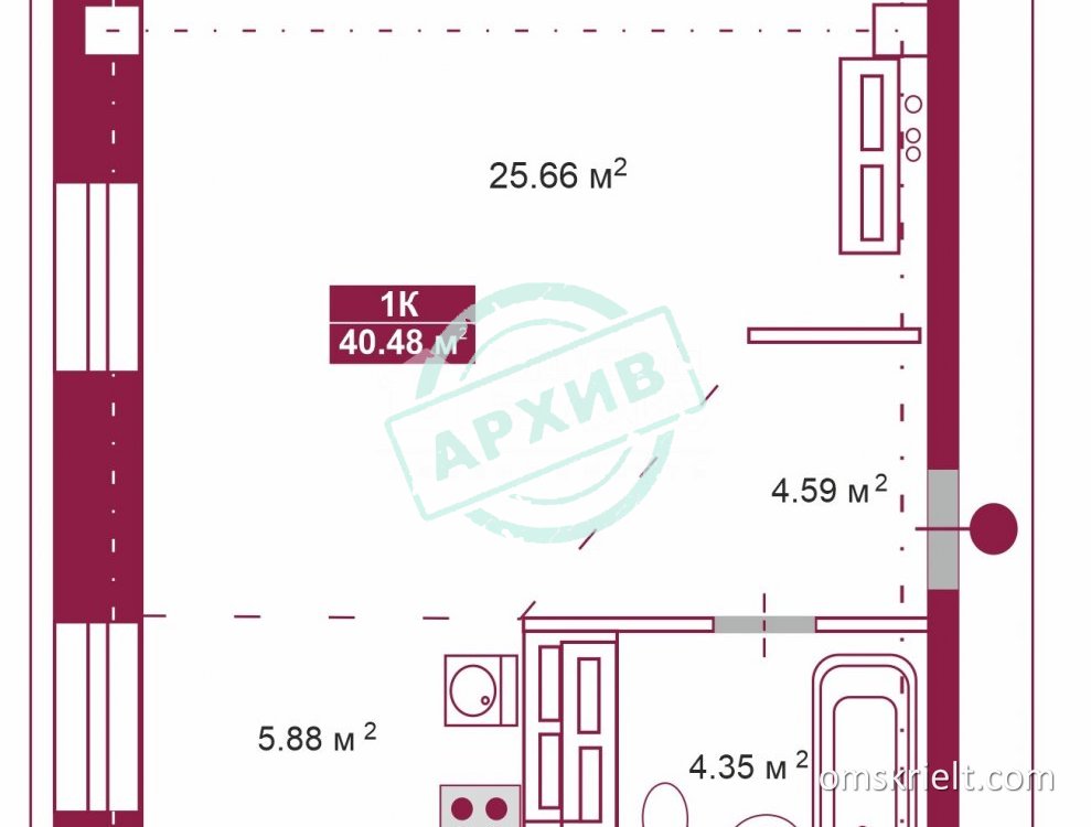 Продам 1-комнатную квартиру в Омске, 41 кв.м