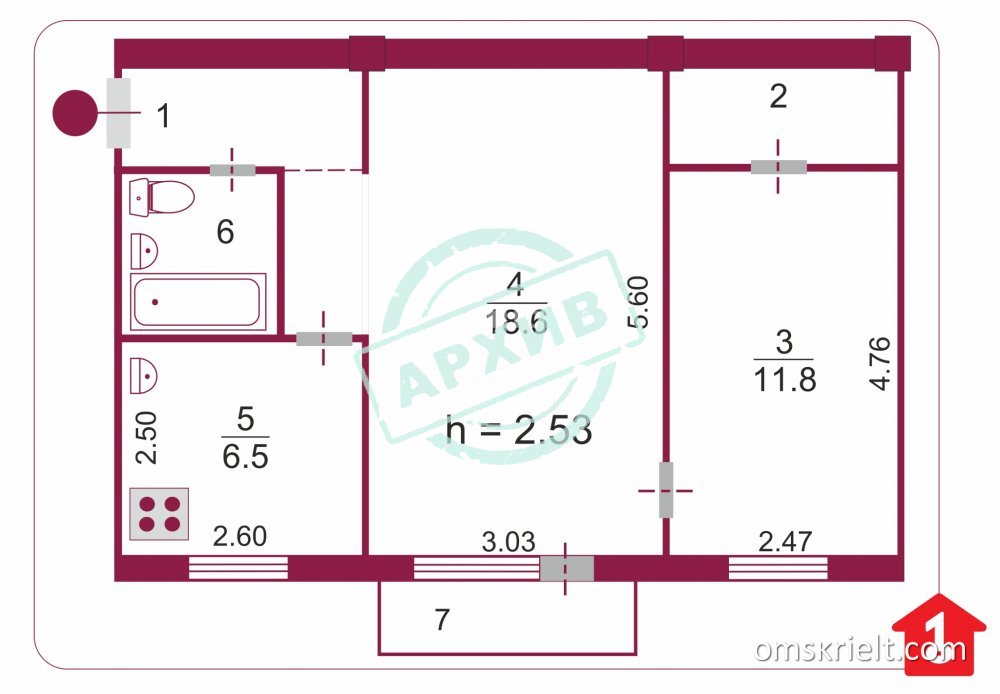 Продам 2-комнатную квартиру в Омске, 44.6 кв.м