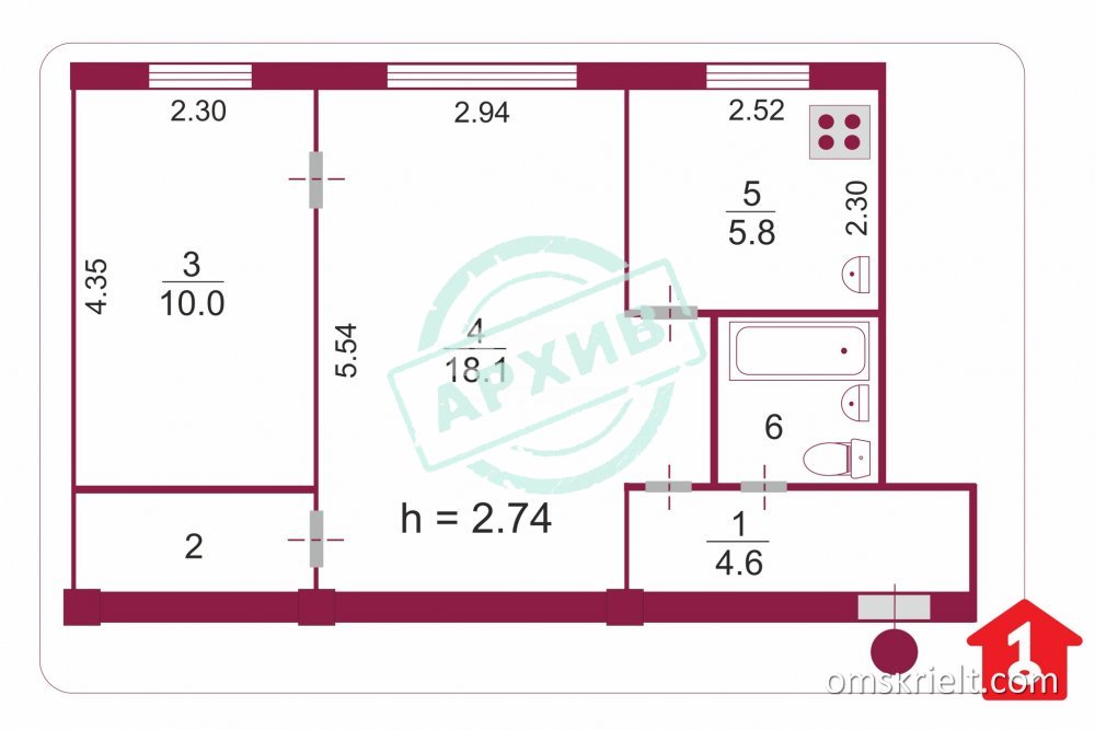 Продам 2-комнатную квартиру в Омске, 43.9 кв.м