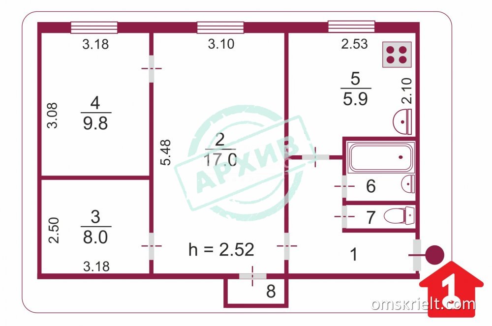 Продам 3-комнатную квартиру в Омске, 49.2 кв.м