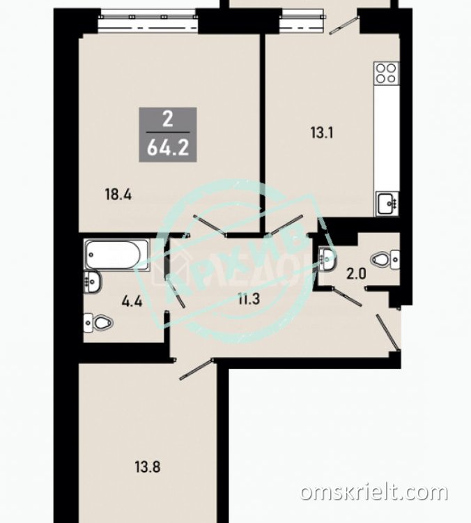 Продам 2-комнатную квартиру в Омске, 64.2 кв.м
