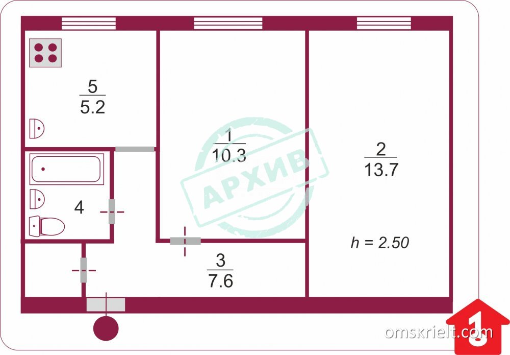 Продам 2-комнатную квартиру в Омске, 40.1 кв.м