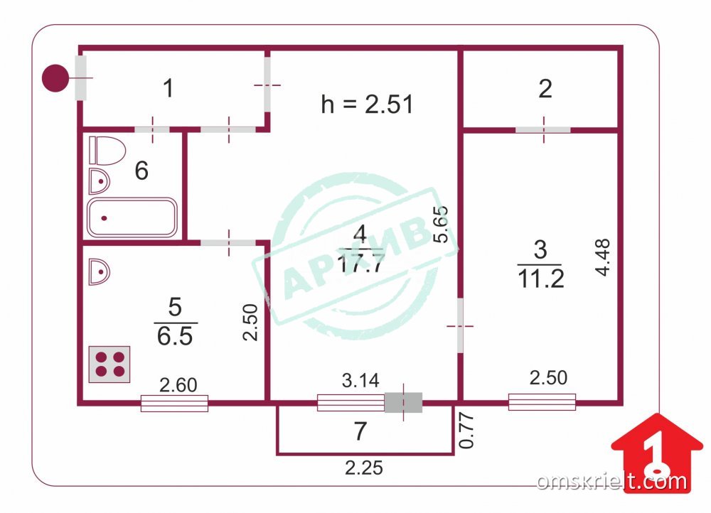 Продам 2-комнатную квартиру в Омске, 45 кв.м