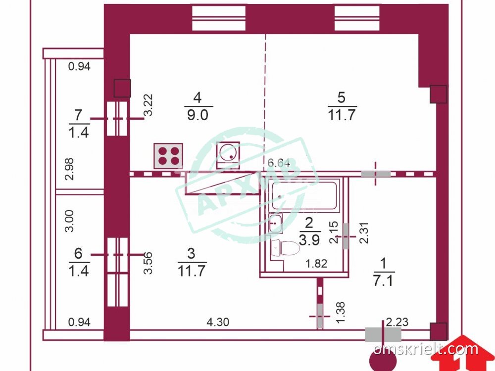 Продам 2-комнатную квартиру в Омске, 43.4 кв.м