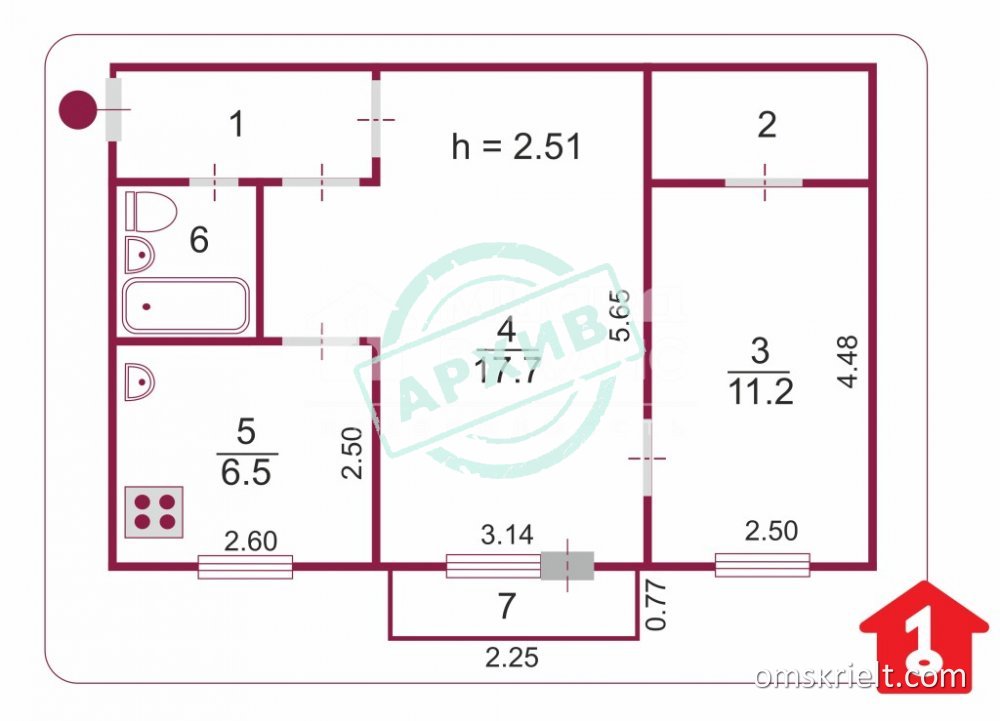 Продам 2-комнатную квартиру в Омске, 46.5 кв.м