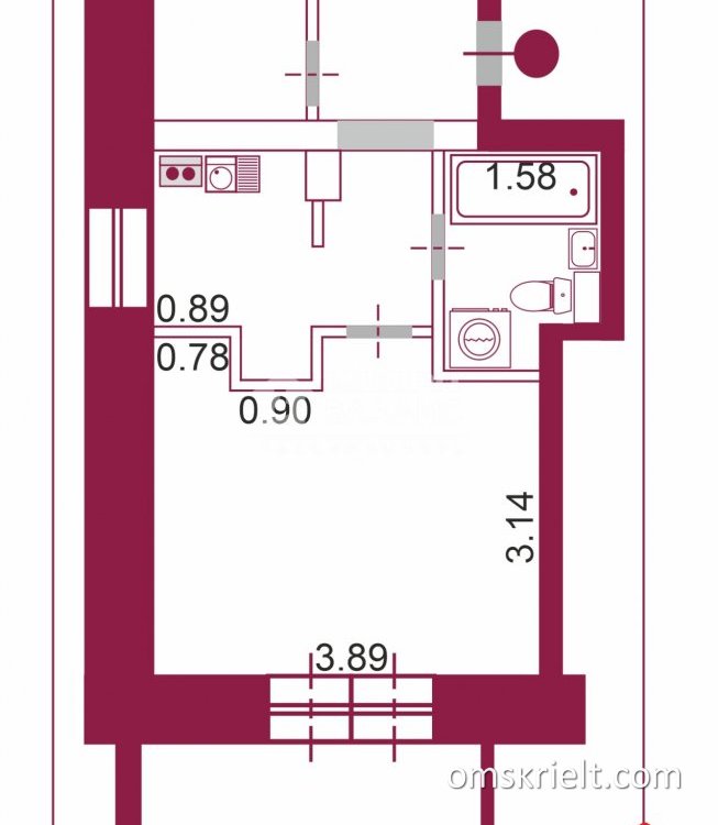 Продам 1-комнатную квартиру в Омске, 26.8 кв.м
