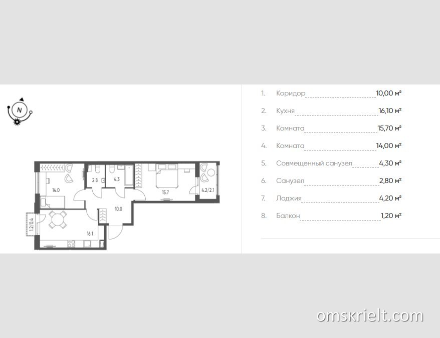 Продам 2-комнатную квартиру в Омске, 65.4 кв.м