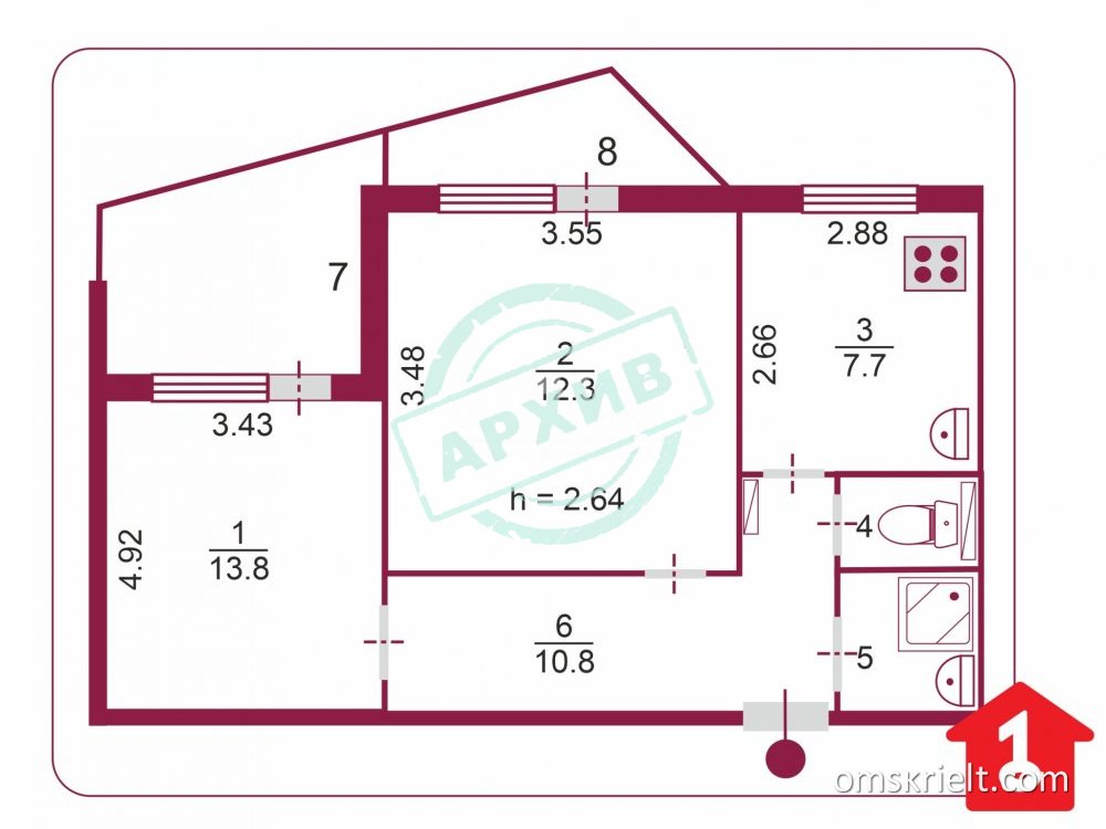 Продам 2-комнатную квартиру в Омске, 48 кв.м