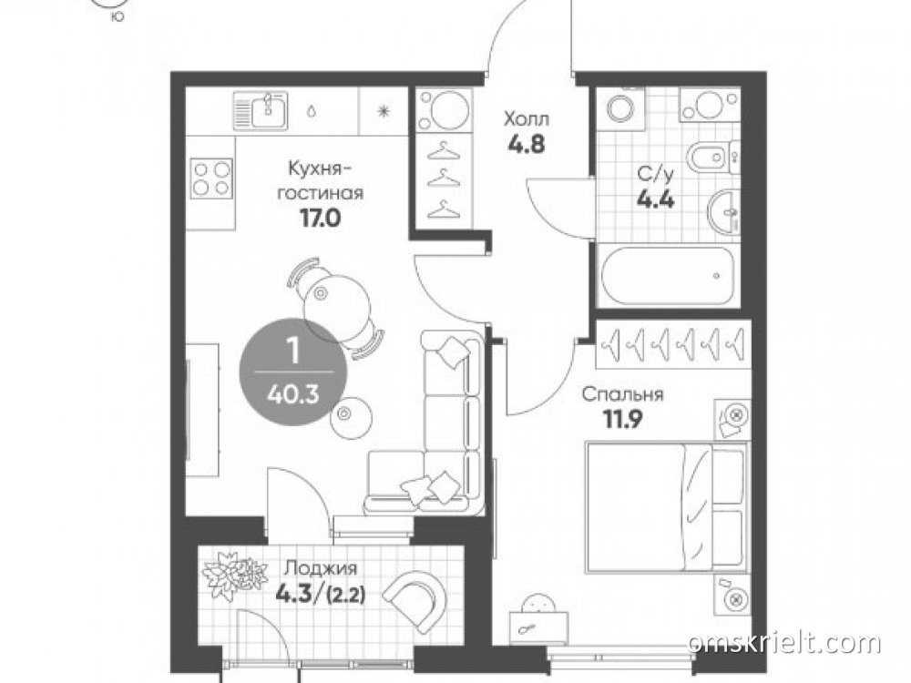 Продам 1-комнатную квартиру в Омске, 40 кв.м
