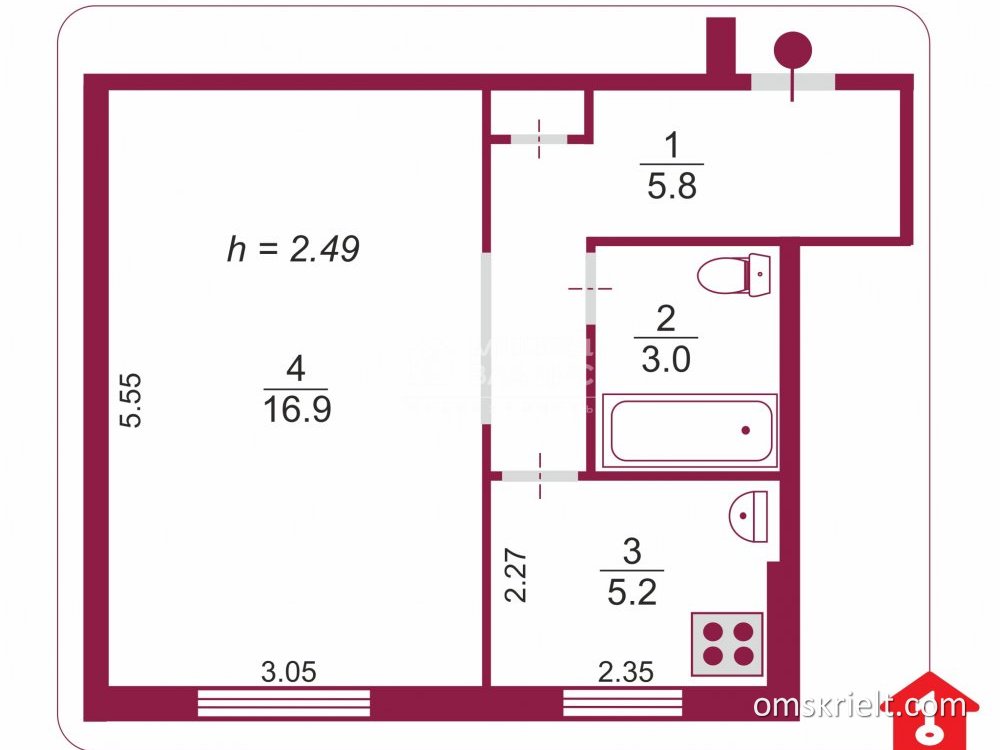 Сдам 1-комнатную квартиру в Омске, 31.2 кв.м