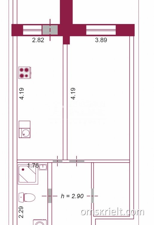 Продам 1-комнатную квартиру в Омске, 43.1 кв.м