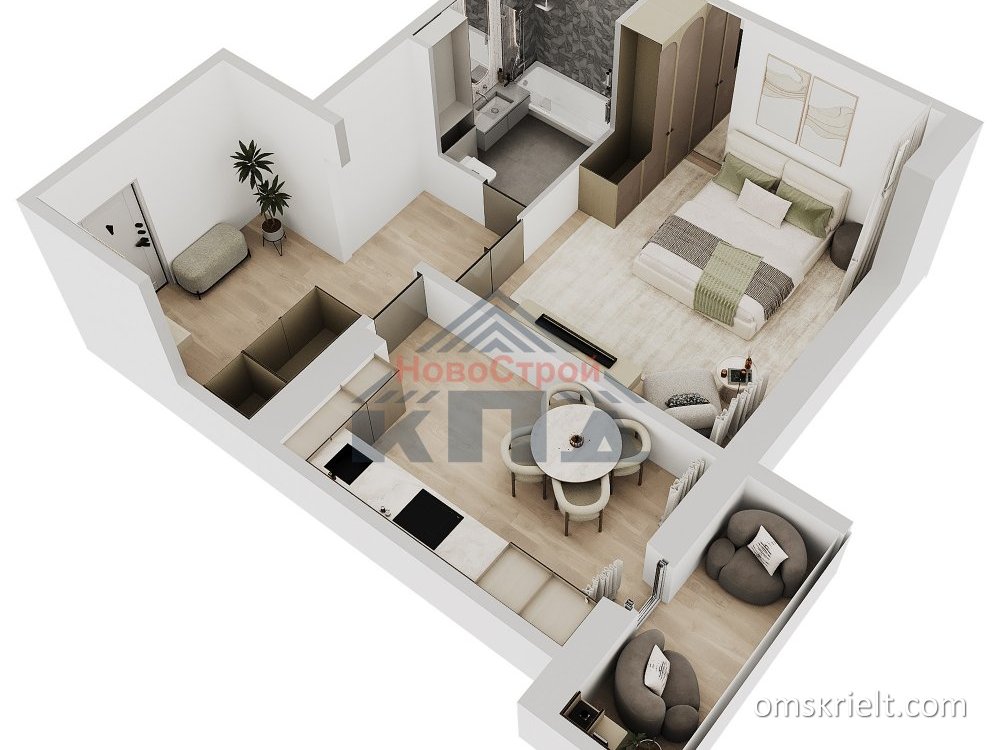 1-комнатная с большой прихожей и двумя лоджиями… 46/17/12 1-комнатная квартира 48, 58* кв.м. (45, 95 кв.м.; 46, 15 кв.м; 48, 27 кв.м.; 48, 6 кв. м.) с увеличенной по площади кухней-гостиной почти 12 кв.м. и двумя лоджиями 4 и 5 кв.м. Выходы на лоджии из кухни и из жилой комнаты. Панорамное остекление даст вам возможность отдохнуть, любуясь отличными видами на зеленый массив. Помимо возможности для отдыха и хранения сезонных вещей, хозяйки очень ценят, когда им удобно вывесить на лоджию белье или быстро заморозить пельмени. Увеличенное пространство на кухне, позволит вам использовать жилую комнату, квадратную в плане, под спальню. Здесь же может расположиться кабинет или кроватка для самого маленького члена семьи. Рядом располагается совмещенный санузел почти 4, 5 кв.м., оснащенный всей сантехникой. В большой прихожей, более 8 кв.м., есть возможность установить не только вместительный шкаф-купе, но и устроить зону релакса. На кухне устанавливается электроплита. Окна квартиры выходят на восток. *Общие площади квартир по стояку отличаются только размерами лоджий. Квартиры реализуются с отделкой «под ключ» по Договорам Долевого Участия. Оплата возможна ипотекой ведущих банков РФ, жилищными сертификатами, в т.ч. и материнским капиталом.