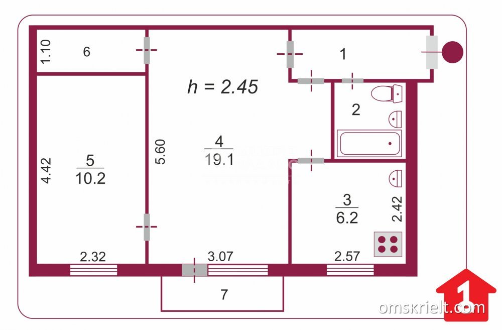 Продам 2-комнатную квартиру в Омске, 45.4 кв.м