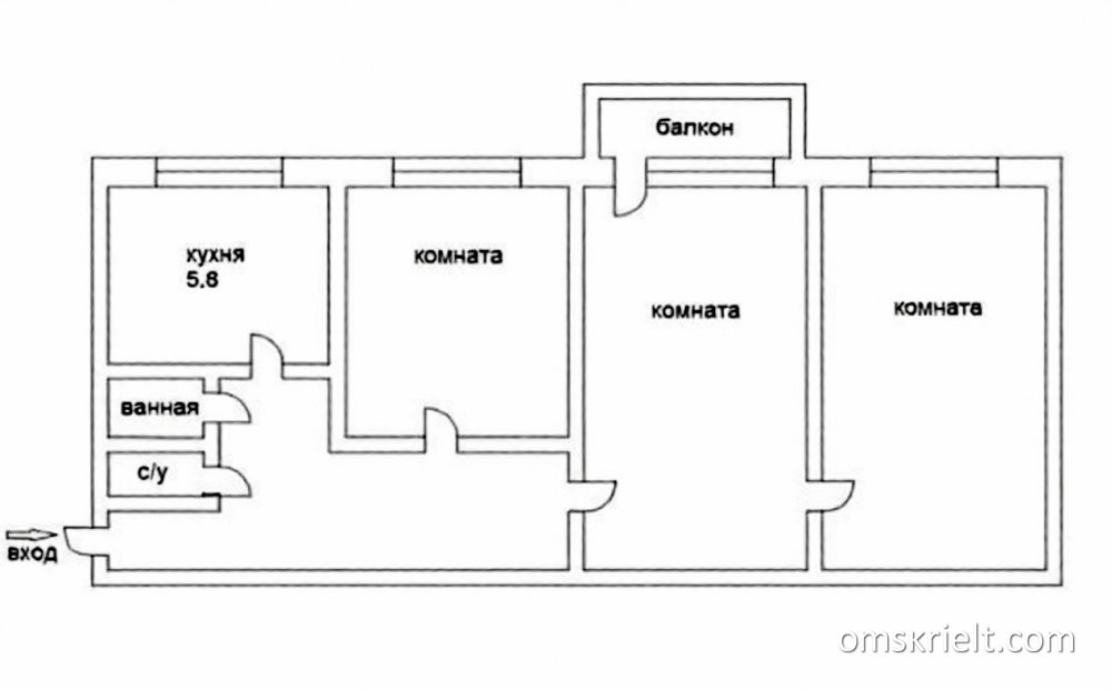 Продам 3-комнатную квартиру в Омске, 57.7 кв.м