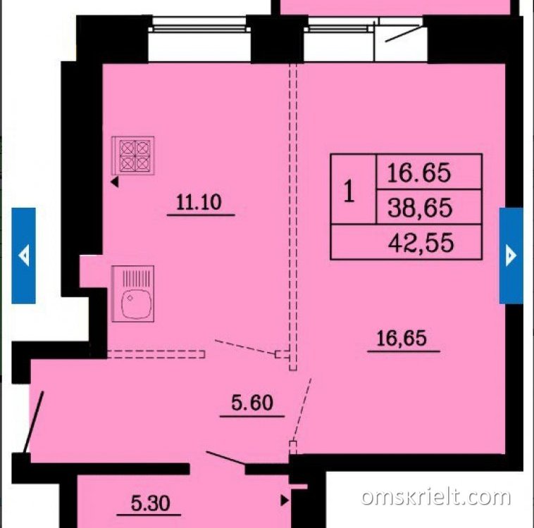Продам 1-комнатную квартиру в Омске, 42.55 кв.м