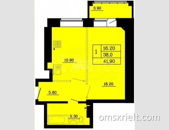 Продам 1-комнатную квартиру в Омске, 41.8 кв.м