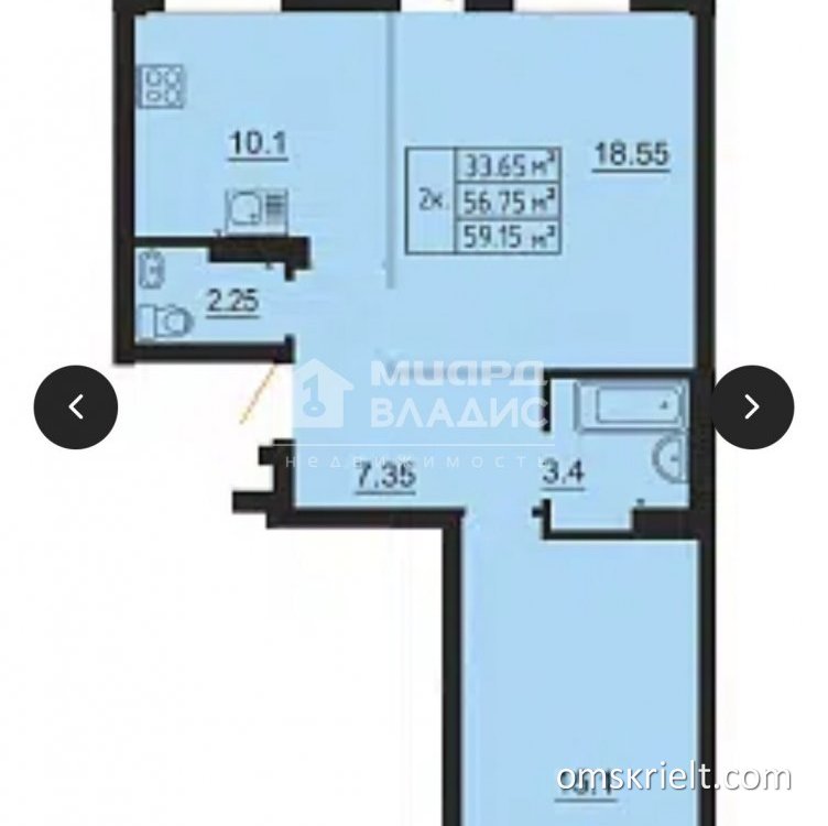 Продам 2-комнатную квартиру в Омске, 59.15 кв.м