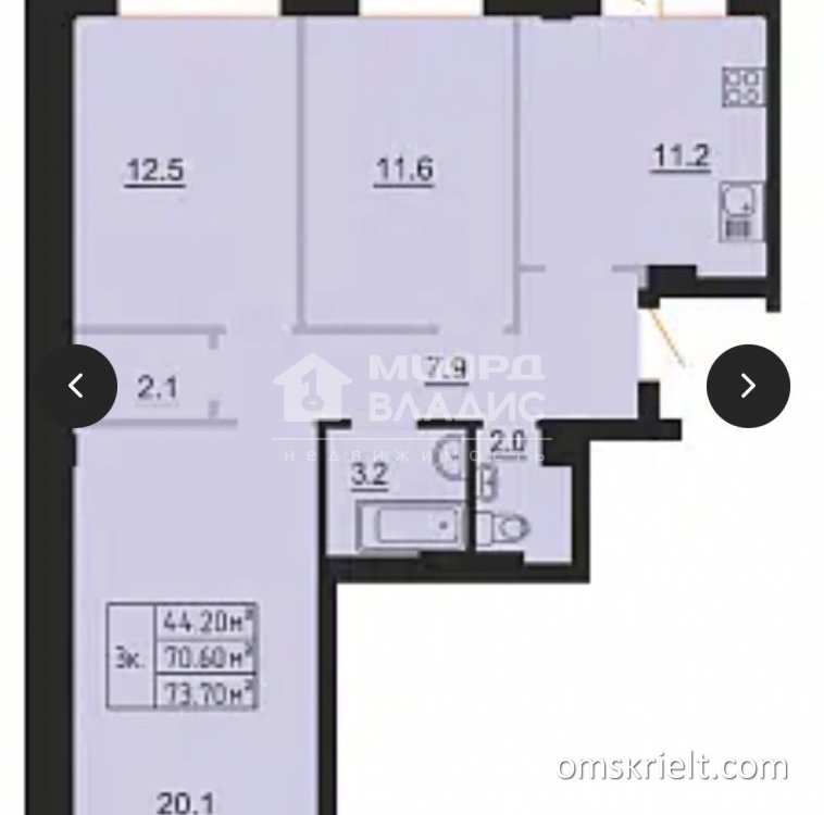 Продам 3-комнатную квартиру в Омске, 73.7 кв.м