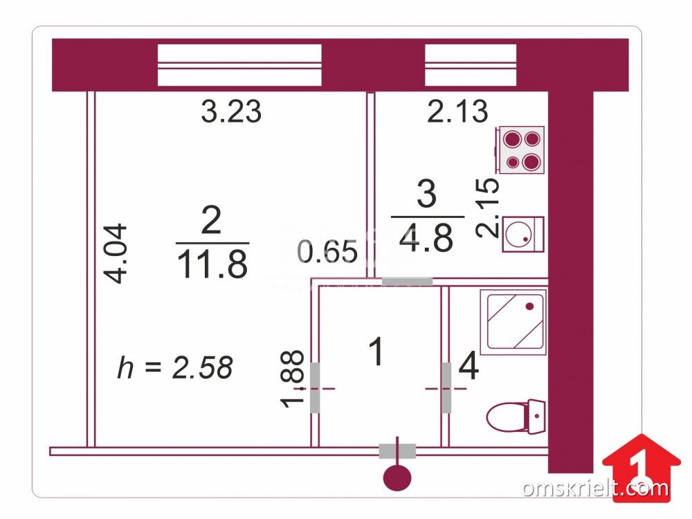 Продам 1-комнатную квартиру в Омске, 21.3 кв.м