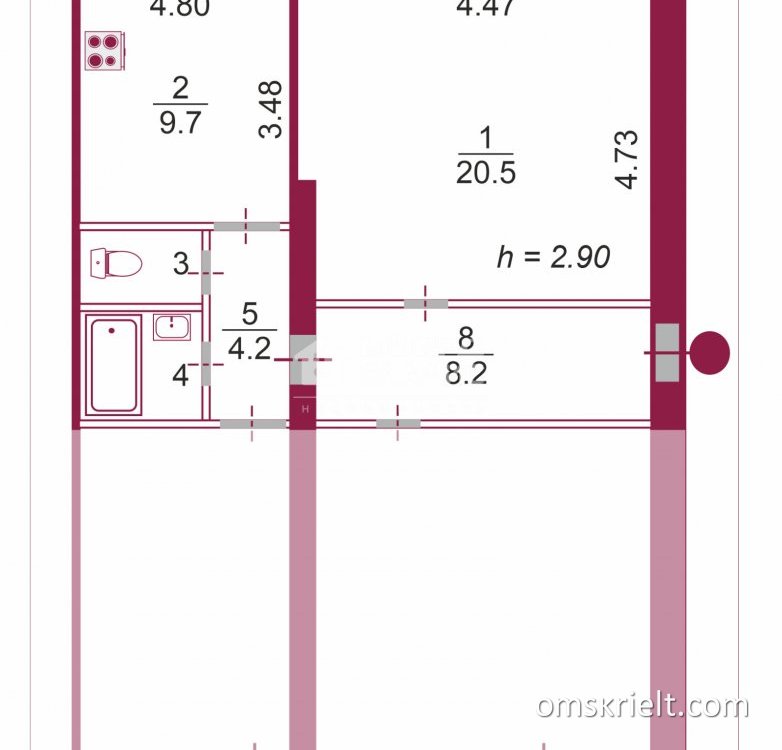 Продам долю комнату в Омске, 83 кв.м
