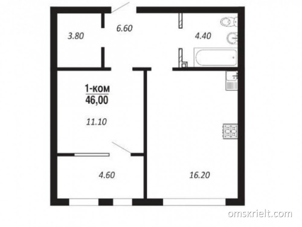 Продам 1-комнатную квартиру в Омске, 46 кв.м