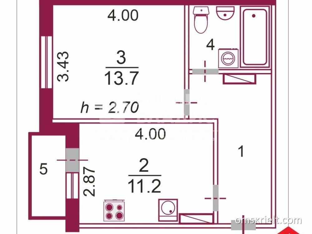 Продам 1-комнатную квартиру в Омске, 33.7 кв.м