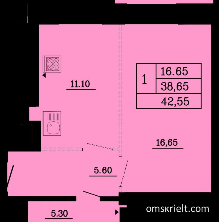 Продам 1-комнатную квартиру в Омске, 42.55 кв.м