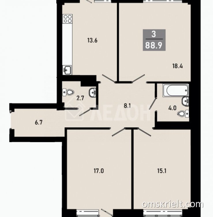 Арт. 131944320 Агентство недвижимости "Ледон" предлагает к приобретению трехкомнатную квартиру с улучшенной и функциональной планировкой в современном ЖК «Гармония». Наше предложение, отличный выбор для всех тех, кто планирует проживать в новом доме с особой атмосферой комфорта, уюта и надежности. Современный фасад здания с отличной инсоляцией характерно выделяется среди новостроек расположенных рядом. Перспективный проект реализуется крупнейшим застройщиком нашего города: ГК «Стройбетон». Этап строительства ЖК завершен, плановый срок ввода в эксплуатацию: март 2026 года. Дом монолитно-кирпичный, переменной этажности (3 подъезда (14, 16, 18 этажей), всего 172 квартиры). В подъезде на лестничной площадке расположено по 3 квартиры, 2 лифта (грузовой и пассажирский). Лестничные пролеты большие, максимально приспособлены для комфортного перемещения людей и грузов. Придомовая территория заботливо благоустроена, высажены декоративные кустарники и деревья, оборудована современная спортивная и детская площадки. Выделена пешеходная, прогулочная зона. Открытая, парковочная площадка оснащена достаточным количеством машиномест. Квартира продается с отделкой под ключ, ремонт от застройщика (уже включен в стоимость). Потолки натяжные, стены оклеены обоями, на полу уложен линолеум. Установлены: межкомнатные двери, радиаторы отопления (разводка горизонтальная), сантехническое оборудование (2 санузла), счетчики горячей и холодной воды. Окна выполнены из ПВХ-профиля. Входная дверь металлическая, 2 лоджии остеклены до пола. В шаговой доступности от дома расположена торгово-бытовая и развлекательная инфраструктура микрорайона: магазины, аптеки, ГМ «Лента», ГМ «Магнит Семейный». Работают детские дошкольные и образовательные учреждения (детский сад № 127, Гимназия № 139). Спортивная «GDrive Арена» позволит Вам с удовольствием проводить время на домашних хоккейных матчах ХК «Авангард», и других культурно-развлекательных мероприятиях нашего города. Удобная транспортная развязка (остановки общественного транспорта «мкр. Прибрежный», «По требованию») позволяет без затруднений перемещаться в направлении центра и других районов города. Продажа квартиры осуществляется по единой цене с застройщиком, в том числе с учетом действующих на момент бронирования, акционных предложений (скидок). Бонус для всех наших клиентов - организация и сопровождение сделки в подарок! Рассматриваются любые варианты расчета: наличные, безналичные средства (ипотека, военная ипотека, материнский (семейный) капитал и др.). Заинтересовало предложение? Звоните! Организуем показ (презентацию) в удобное для Вас время!