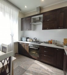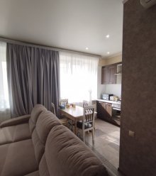 Продается светлая , теплая 3-х комнатная квартира. Комнаты смежно-изолированные. На стенах обои, пол линолеум, на потолке плитка. Окна деревянные, выходят во двор и на улицу. Балкон не застеклен. санузел совмещенный, стены отделаны плиткой, на полу линолеум, на потолке плитка. Установлены все приборы учета. Есть кладовка... |