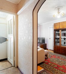 Продается светлая , теплая 3-х комнатная квартира. Комнаты смежно-изолированные. На стенах обои, пол линолеум, на потолке плитка. Окна деревянные, выходят во двор и на улицу. Балкон не застеклен. санузел совмещенный, стены отделаны плиткой, на полу линолеум, на потолке плитка. Установлены все приборы учета. Есть кладовка... |