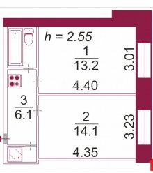 2-комн., Новороссийская, 3